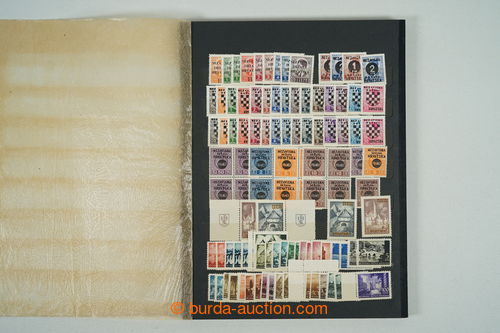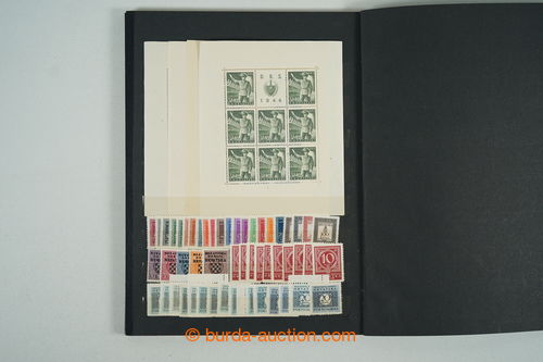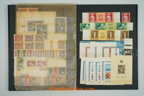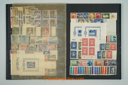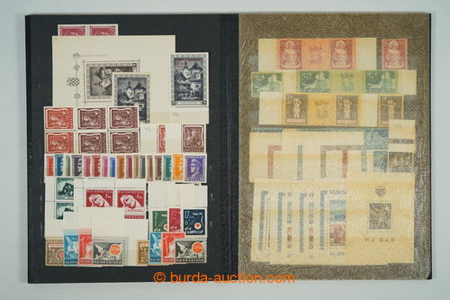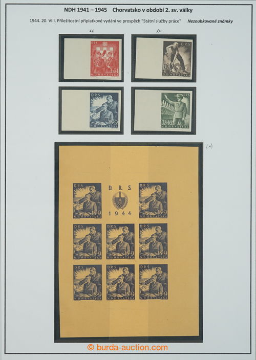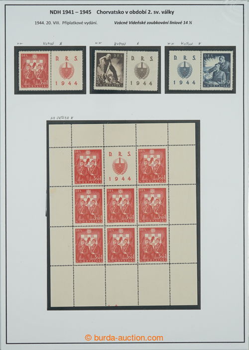 Philately. [COLLECTIONS] Mi.162-165, State labour service, selection on 3 pages A4: sets with coupons in rare perf L 14½ (Mi.162B-164B) and whole PB Mi.162B, PB Mi.164C 1x with double perf, PB Mi.162C with significantly shifted