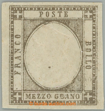 Philately. Sass.10, Coat of arms 50Baj, rhombic cancel.; close margins and minor faults, overall good, exp. Thier and Schlesinger, c.v.. 3.500EUR