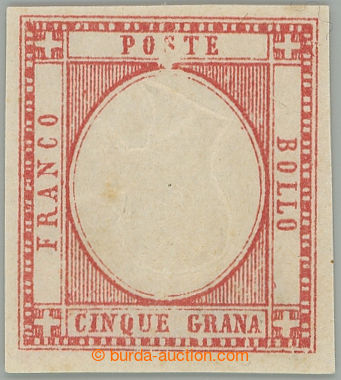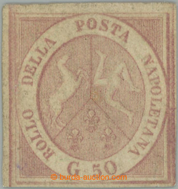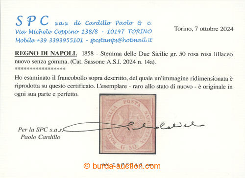 Philately. Sass.14a Coat of arms 50 Grana; fine, without gum, certificate Cardillo, c.v.. (*) 9.500EUR, rare classic stamp (Image) (Image2)