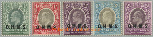 Philately. SG.O10-O14, official Edward VII. ½a - 8a with overprint O.H.M.S; hinged, 3x exp. Diena, c.v.. £544 (Image) (Image2)