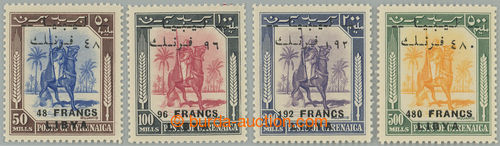 Philately. ISSUE FOR FEZZAN / Sass.20I-23I, overprint 48f/50m - 480f/500m; complete set mint never hinged, 100m small paper imperfection, c.v.. 700EUR (Image) (Image2)