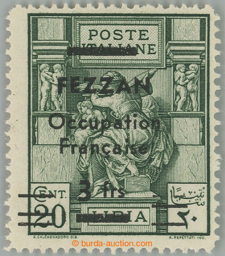 Philately. French occupation of Fezzanu / Sass.5, overprint Motives 3Fr/20c; mint never hinged, c.v.. 520EUR (Image) (Image2)