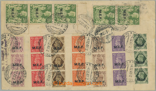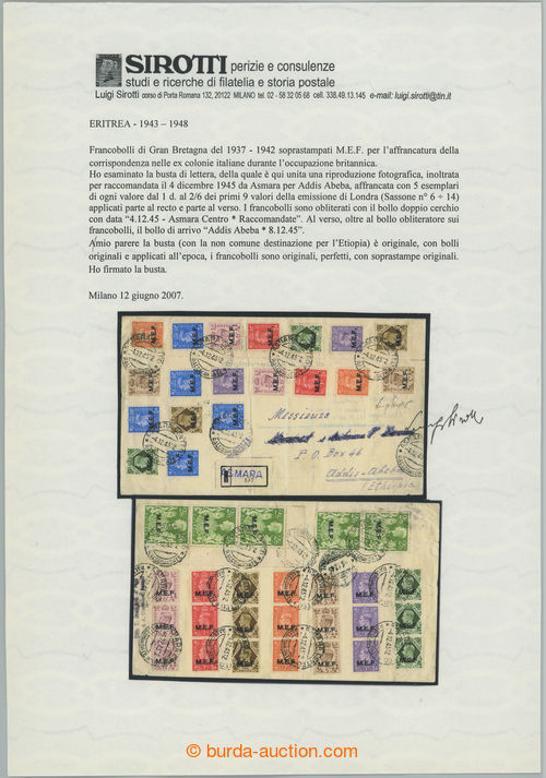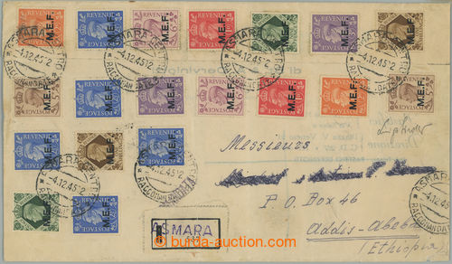 Philately. Brit. occupation / Reg letter with multiple mixed franking M.E.F. (Middle East Forces) Sassone 6-14, i.a. with 5 pcs of 2Sh6p, sent from ASMARY to ADDIS ABEBBY; certificate Luigi Sirotti, fine, cat. min. 12.000EUR (Image) (Image2)