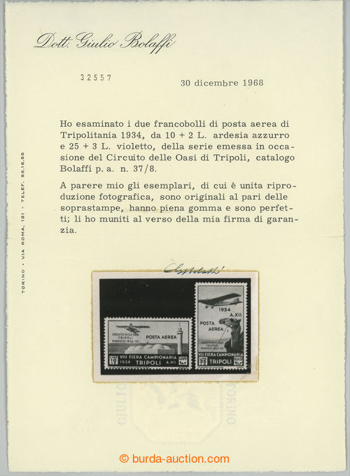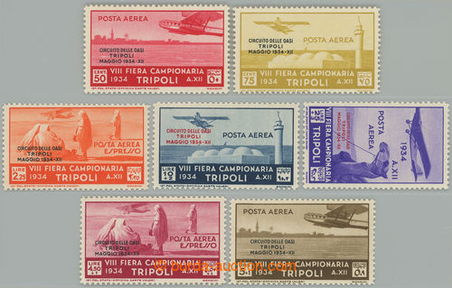 Philately. Sass.34-40, overprint Airmail 50c - 4,50+1L; complete VF set, Sass.37 and 38 certificate Bolaffi, c.v.. 3.250EUR, rare