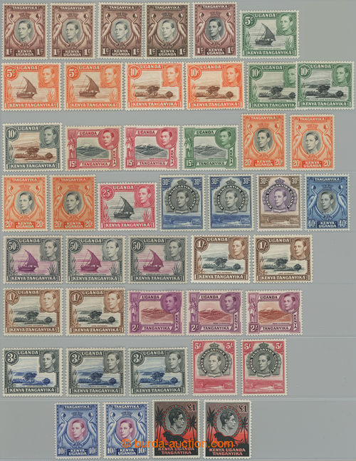 Philately. SG.131-150, George VI. Motives 1C - £1, rare selection of 44 stamps with many better shades and perforation types, i.a. SG.139, 139a, 144ea, 145, 145a, 145ba, 146 (minor faults), 146a, 147, 147a, 148a, 150a; overall