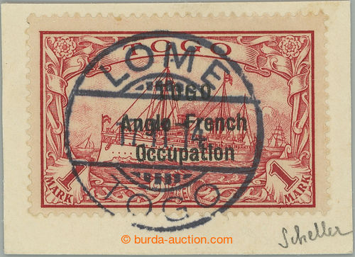 Philately. ANGLO-FRENCH OCCUPATION / SG.H23, Yv.41A, Emperor´s Yacht 1M carmine, overprint TOGO / ANGLO-FRENCH / OCCUPATION on cut-square with CDS LOME; VF, certificates and expertized Buhler and Scheller, cat. Stanley Gibbons