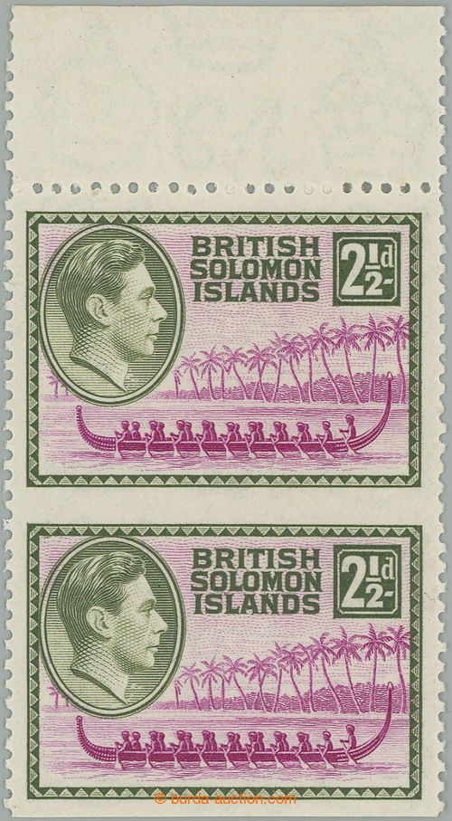 Philately. SG.64a, George VI. - War Ship 2½P, vertical marginal pair with OMMITED HORIZONTAL PERFORATION BETWEEN; VF, c.v.. £26.000 (!), scarce, important rarity (Image) (Image2)
