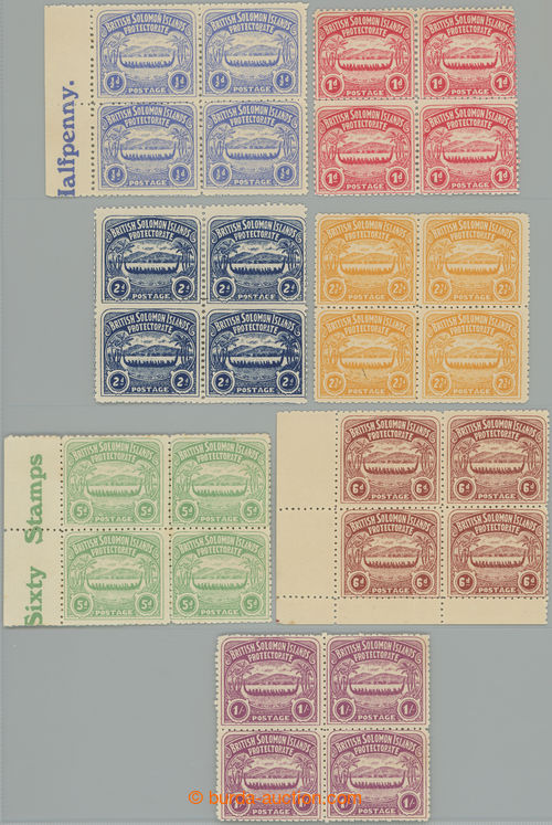 Philately. SG.1-7, Rowing boat ½P - 1Sh, complete tfirst issue in blocks of four; usual minor faults, 2P small thins, cat. min. £1.500, rare!