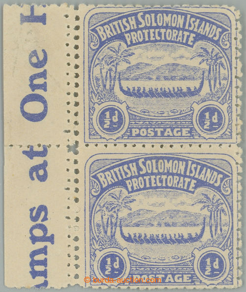 Philately. SG.1, Rowing boat ½P ultramarine, marginal pair with double vertical perforation; fine (Image) (Image2)