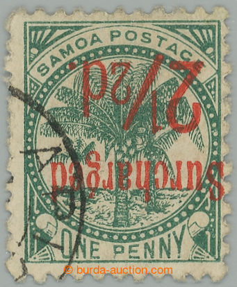Philately. SG.84a, Palms 1P green with red INVERTED overprint SURCHARGED 2½P; very fine printing error, exp. legendary H. Bloch, c.v.. £425