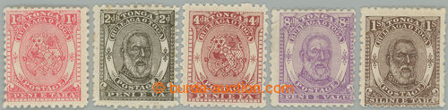 Philately. SG.10-14, Coat of arms + King George V. 1P-1Sh; complete set, c.v.. £275 (Image) (Image2)