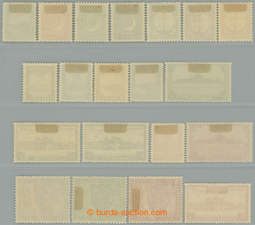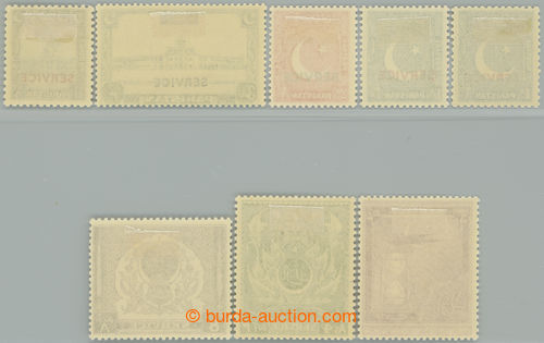 Philately. SG.O27-O31, O32-O34, official Crescent and buildings 1A - 8A with overprint SERVICE + Motives 3A - 8A; 2 complete sets, c.v.. £145