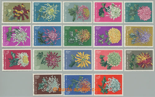 Philately. Mi.570-575 + 577-582 + 583-588, Chrysanthemums I. + II. + III., complete set; some minor gum faults, c.v.. 1.900EUR, sought