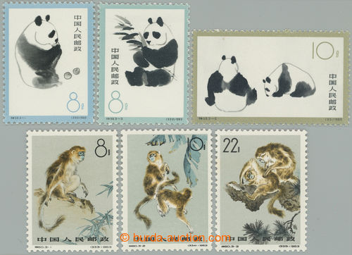 Philately. Mi.736-738, 741-743, Giant Panda 8F-10F + Monkeys 8F-22F; two complete sets, mint never hinged, c.v.. 205EUR, VF (Image) (Image2)