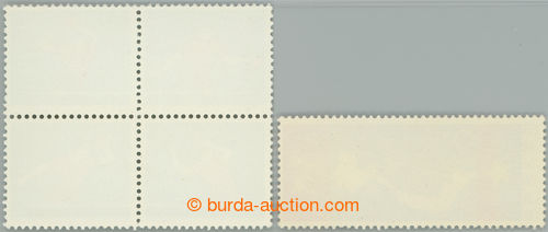 Philately. SCOUTING / Mi.153, 154, overprint 3S+2S green and 5S/6S dark rose, blocks of four, overprints I. type - Tiger's Head and inscription, 3S+2S on reverse with controlling postmark; with original gum mint never hinged, c.v..