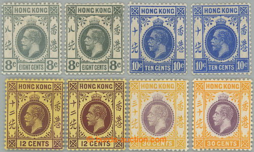Philately. SHADES / SG.104, 104a, 105, 105a, 106, 106a, 110, 110a, George V. 8c, 10c, 12c and 30c with catalogue shades, wmk Mult Crown CA; very fine, from important collection, c.v.. £322 (Image) (Image2)