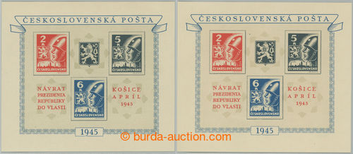Philately. Pof.A360/362, Kosice MS, 1x with plate variety paw + 1x with krouzkem by/on/at L tlapy lion in emblem; mint never hinged