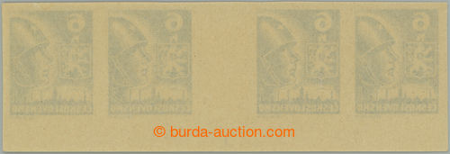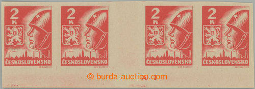 Philately. DESKOVE ZNACKY / Pof.354 Mv(4) plate mark, 2 Koruna light red, 4-stamps. horiz. gutter with lower margin and plate mark A1, plate D; mint never hinged, nice light color shade red (Image) (Image2)
