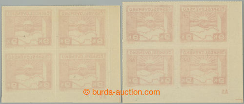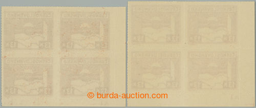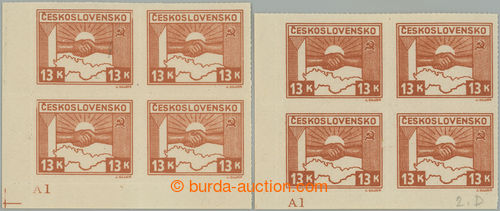 Philately. DESKOVE ZNACKY / Pof.358 plate mark, 13 Koruna brown, comp. 2 pcs of L bottom bloks of four with plate mark A1, plate 1 + plate 2; mint never hinged (Image) (Image2)