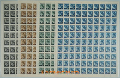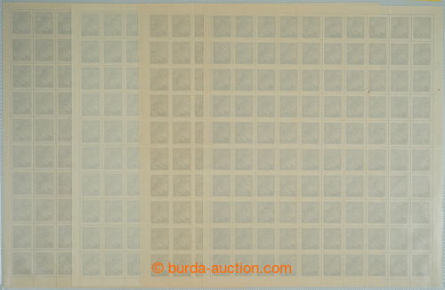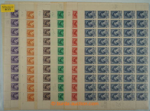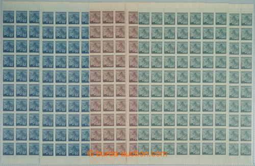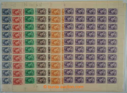 Philately. COUNTER SHEET / Pof.381-386, Moscow 5h - 2 Koruna, whole set in/at complete 100 stamps sheets, various plate; only small folds in margins, small production gum flaw, overall fine, in/at complete sheets sought! (Image) (Image2)