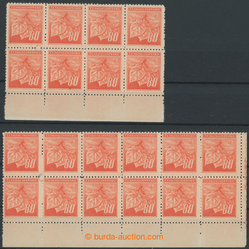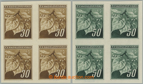Philately. UNISSUED / Pof.373N-374N, Linden Leaves 30h and 50h, imperforated blocks of four; mint never hinged, only several nepatrnych production vynechavek in gum, exp. by Karasek., in blocks of four rare! (Image) (Image2)