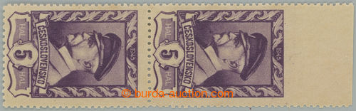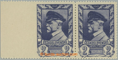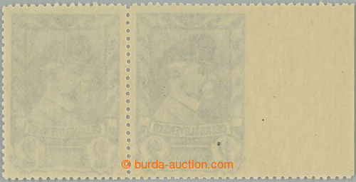 Philately. Pof.386 production flaw, Moscow 2 Koruna grey-blue, horizontal pair with L margin and omitted vertical perf in margin; mint never hinged, small grain in paper, rare usage! (Image) (Image2)