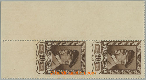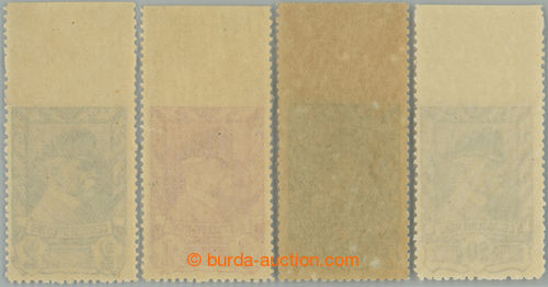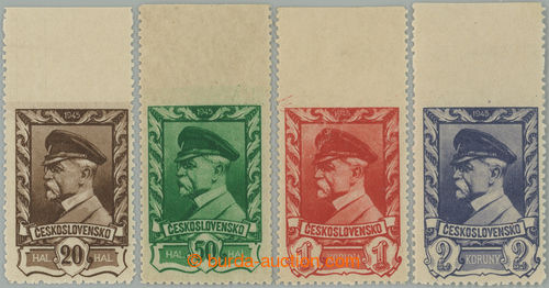 Philately. Pof.383-386 production flaw, Moscow, values 20h, 50h, 1 Koruna and 2 Koruna, stamp. with upper margin and omitted upper horiz. perf; mint never hinged, c.v.. 4.900CZK (Image) (Image2)