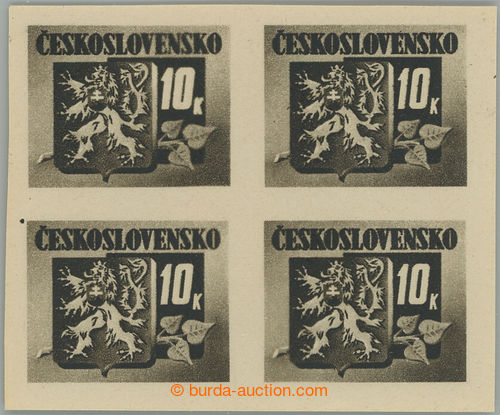 Philately. Pof.371 ST, Bratislava's 10K black, block of four with joined type close 0 on pos. 26; mint never hinged (Image) (Image2)