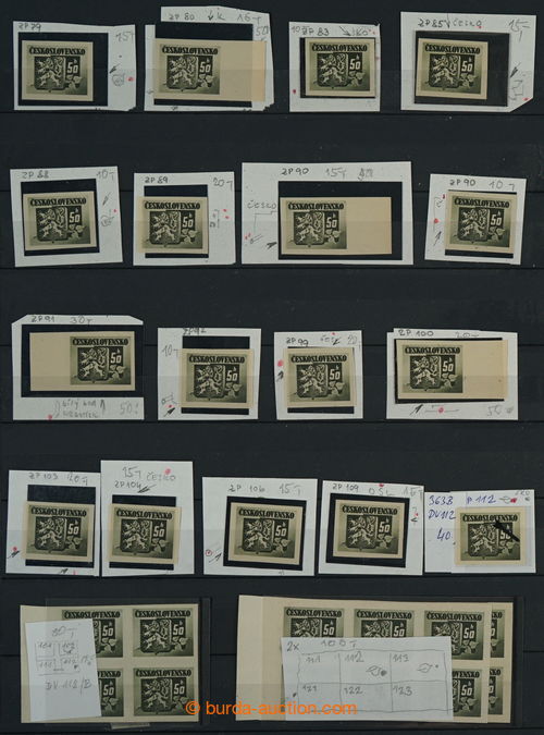 Philately. [COLLECTIONS] BRATISLAVA-ISSUE / Pof.363-371 DV+VV, specialized collection with identified plate and production errors/flaws, lot of blocks, stripe and individual stamp., all values, supplemented with several entires;