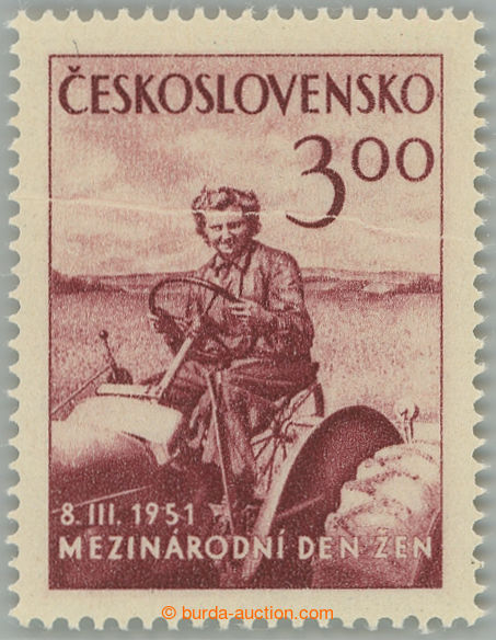 Philately. Pof.579 production flaw, International Women's Day 3Kcs, horiz. hair paper crease in paper; mint never hinged, unusual