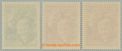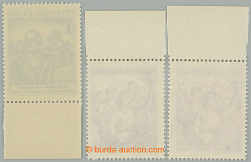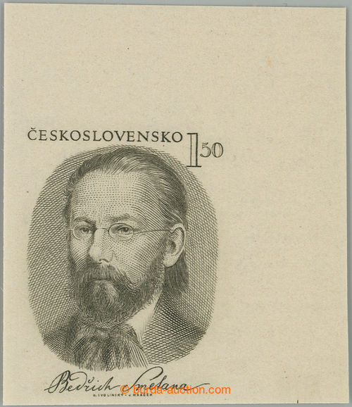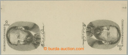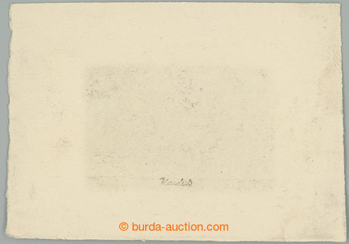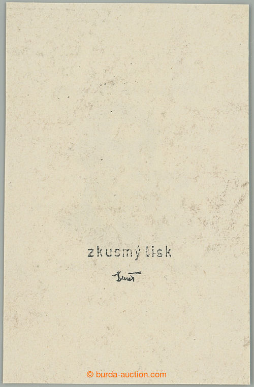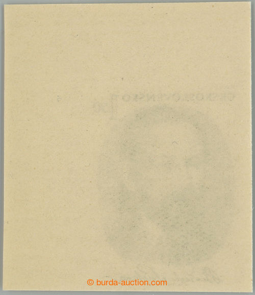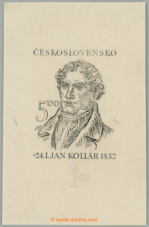 Philately. PLATE PROOF Pof.628, Kollar 5Kcs, proof print unfinished gravure in black color on paper without gum with wide margin, lower with thin/light print values 1,50Kcs; without defects, exp. Benes (Image) (Image2)
