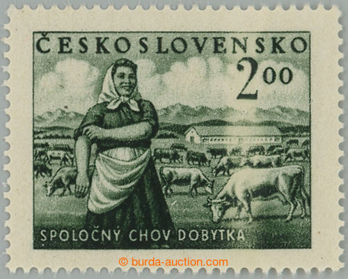 Philately. Pof.584 production flaw, Agricultural Work 2Kcs green, production flaw - vertical light band over the stmp - zavoj; mint never hinged, rare printing flaw! (Image) (Image2)