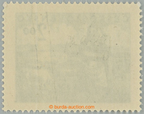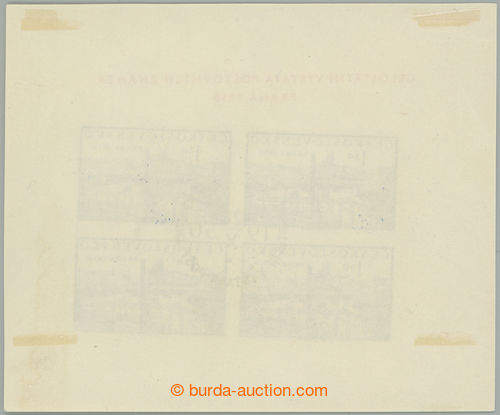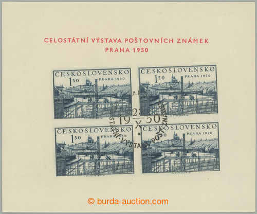 Philately. Pof.A564 production flaw, miniature sheet PRAGUE 1950, production flaw - significant oblique shifted print stamp., combination H/20, with special postmark; without gum (Image) (Image2)