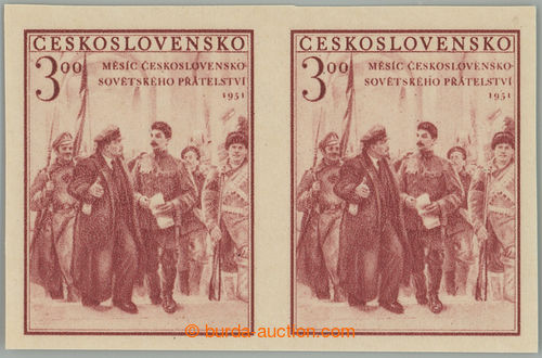 Philately. Pof.621N, Friendship Month 3Kcs, imperforated horizontal pair; mint never hinged, mark Pofis (Image) (Image2)