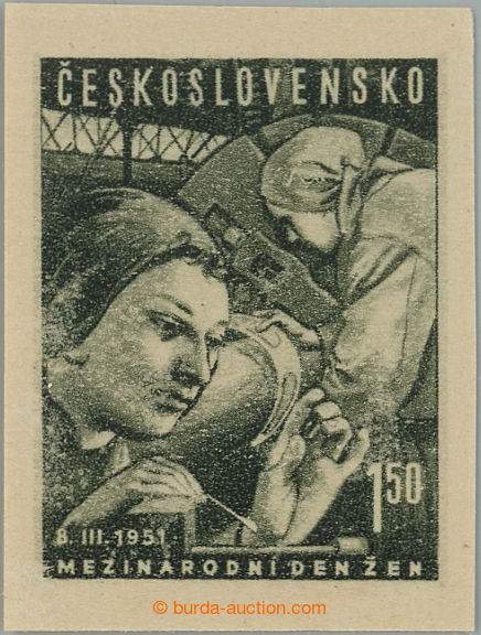 Philately. Pof.578N, International Women's Day 1,50Kcs black-green, imperforated; mint never hinged, c.v.. 4.000CZK, mark Pofis (Image) (Image2)