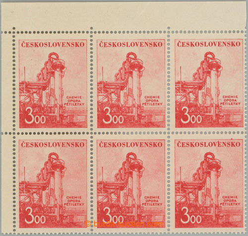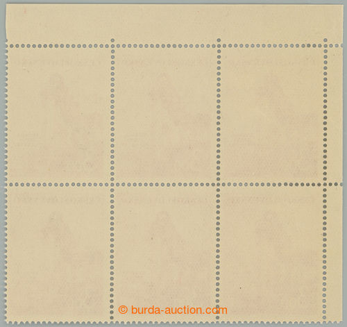 Philately. Pof.635 production flaw, 4. Anniv Vitezneho February 3Kcs red, L upper corner blk-of-6 with production flaw on pos. 13 - significant stains above 2. E and 2. SK in/at name state, in addition in/at 1. line significantly