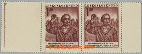 Philately. Pof.644 production flaw, Solidarity Day 1,50Kcs red-brown, horizontal pair with R margin and production flaw - joined paper; mint never hinged, rare production defect! (Image) (Image2)