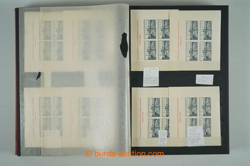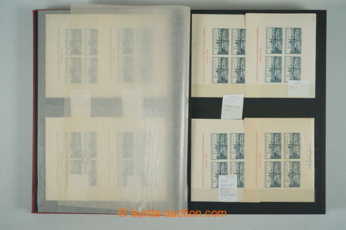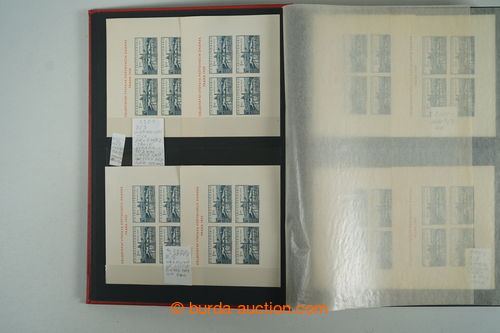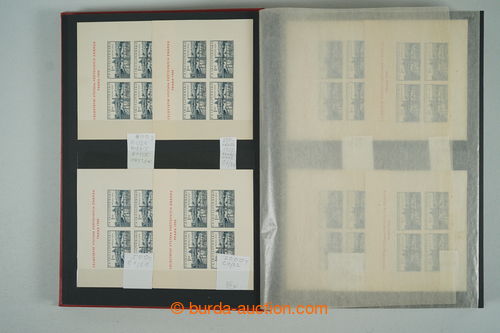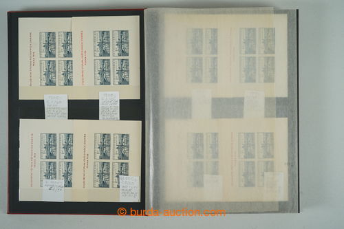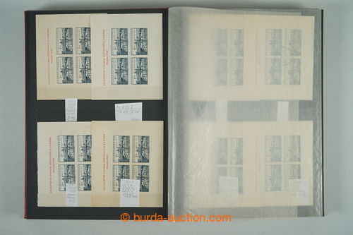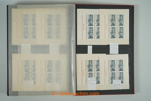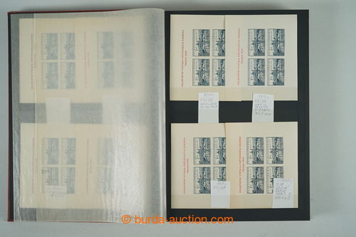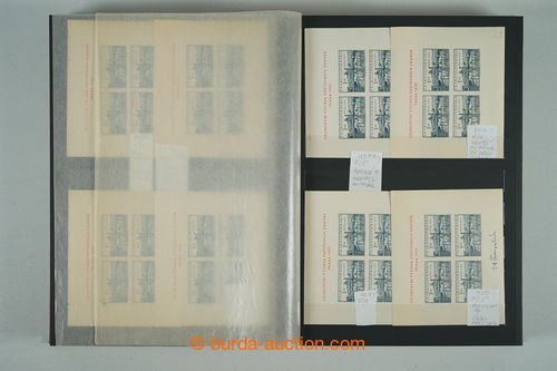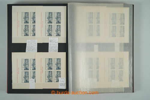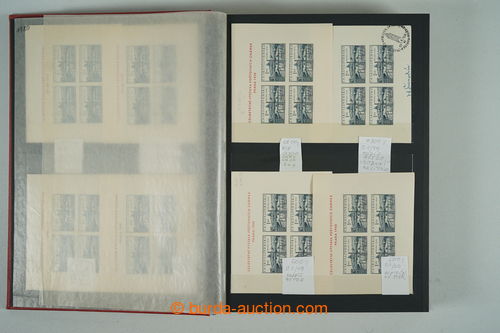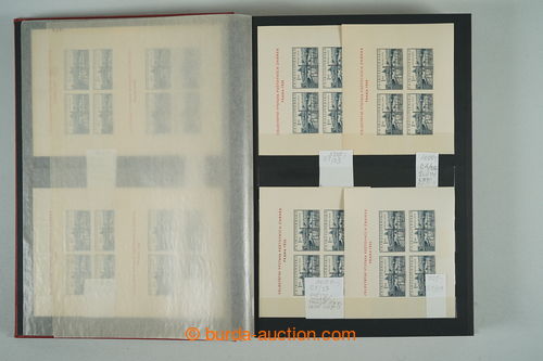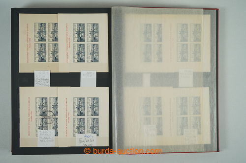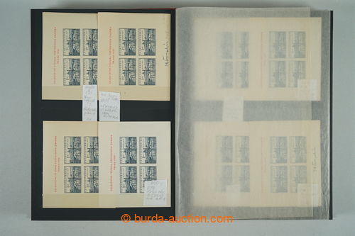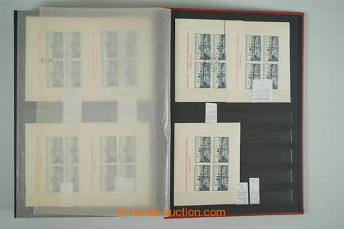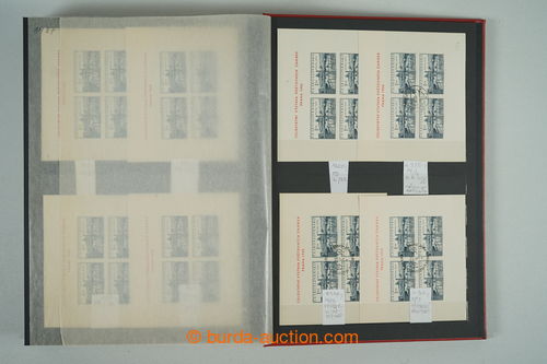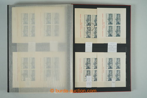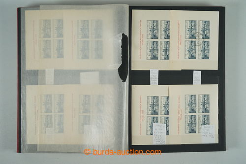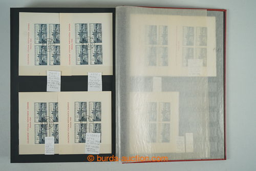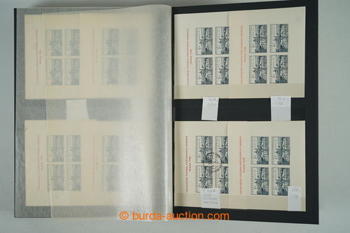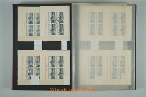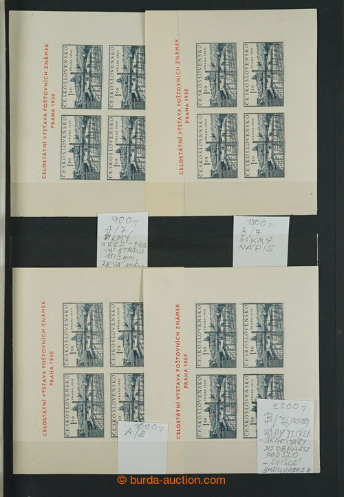Philately. [COLLECTIONS] MINIATURE SHEET PRAHA 1950 / specialized collection 123 pcs of miniature sheets divided according to intended plate and combinations, from that 19 pcs of used pieces, supplemented with 2 pcs of entires