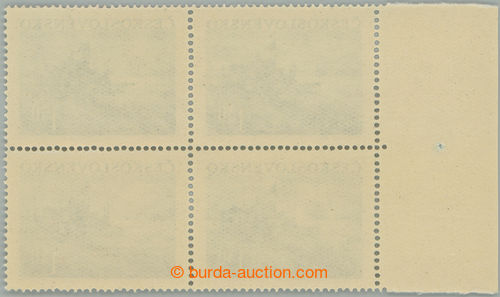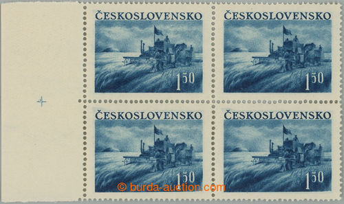 Philately. Pof.648 plate mark, Agriculture 1,50Kcs, block of four with L margin with registry cross; mint never hinged, sought, c.v.. 2.500CZK, rare! (Image) (Image2)