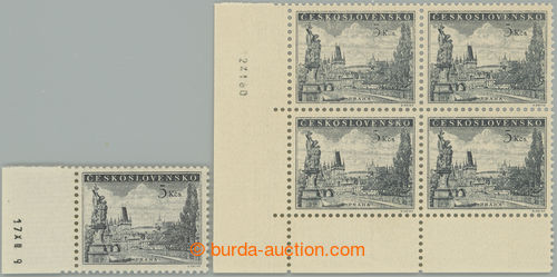 Philately. Pof.742b, Charles Bridge 5Kcs, 2 dates of print from dotisku: grey-black 17.XII.59 and black-grey 12.XI.60 (corner blk-of-4), very rare, still nekatalogizovany shade! (Image) (Image2)