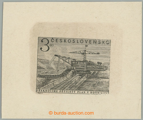 Philately. PLATE PROOF Pof.686, Miners' Day 3Kcs, print original gravure in/at different black color on paper without gum; without defects