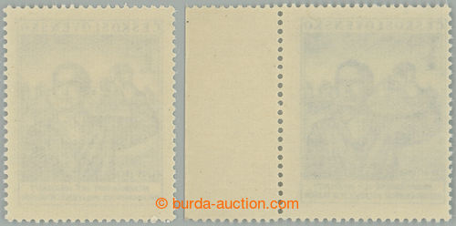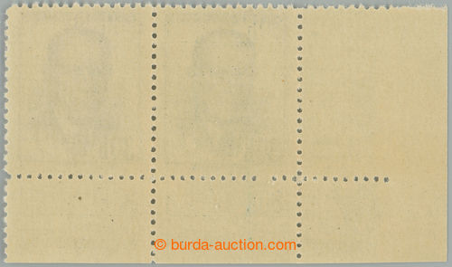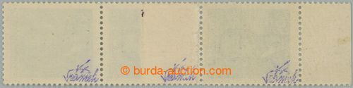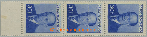 Philately. Pof.736 production flaw, Zapotocky 30h blue, vertical strip of 3 with lower margin, production flaw - joined paper through/over middle stamp.; production defect in gum in lower stamp. and margin, exp. Sramek, rare