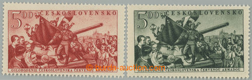 Philately. PLATE PROOF Pof.654, 9. May 5Kcs, comp. 2 pcs of plate proofs in red and green color on stamp paper with gum and perf; mint never hinged