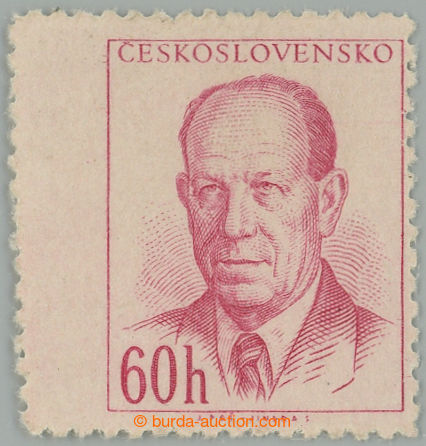 Philately. Pof.741 production flaw, Zapotocky 60h light carmine, stamp. with significant shift vertical perf crossways L to sheet margin; mint never hinged, rare production defect on this issue! (Image) (Image2)