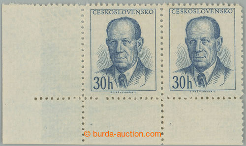 Philately. Pof.740B production flaw, Zapotocky 30h green-blue, L the bottom corner Pr with production flaw - omitted perforation hole in/at the bottom horiz. perf; mint never hinged (Image) (Image2)
