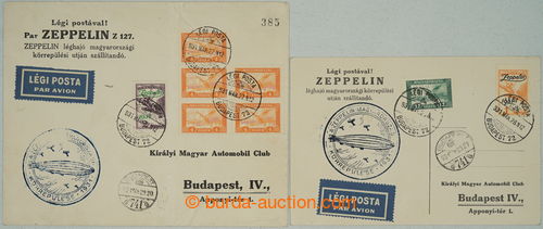 Philately. ZEPPELIN / LZ 127 LANDUNGSFAHRT NACH HUNGARY / letter and card with frankings of zeppelin stamps 1P resp. 2P, Mi.478, 479 and other airmail stamps., deck cancel., CDS LEGI POSTA; good condition (Image) (Image2)