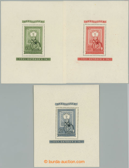 Philately. Mi.Bl.20-22, souvenir sheets 80 years of Hungarian stamps, complete set of 3; mint never hinged, small notice by pencil, c.v.. 180EUR