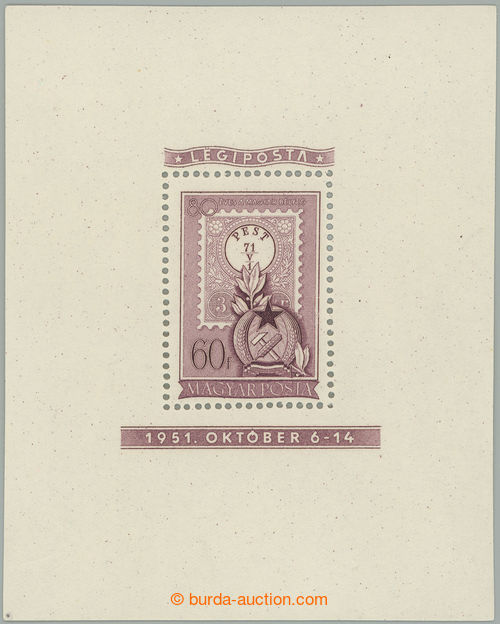 Philately. Mi.Bl.20, unissued miniature sheet 80 years of Hungarian stamps 60f violet, perforated; mint never hinged, only small note by pencil, c.v.. 1.100EUR, rare (Image) (Image2)