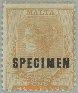 Philately. SG.1s, Victoria ½P buff on blued paper without watermark; fine piece SPECIMEN, c.v.. doesn't report, normal stamp £1.500