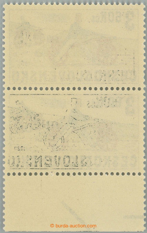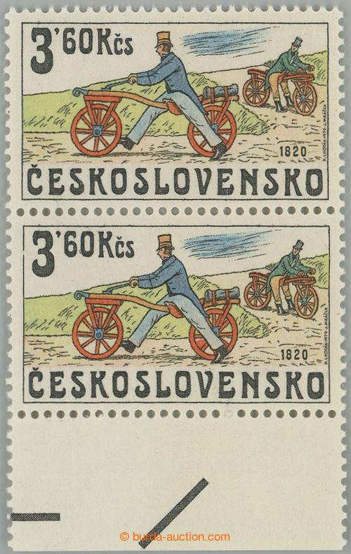 Philately. Pof.2397 plate variety, Historical Bicycles 3,60Kcs, the bottom marginal vertical pair with lower margin and with plate variety - red filler zadniho bicycles/wheel pos. 48/1; mint never hinged, in addition partial sheet